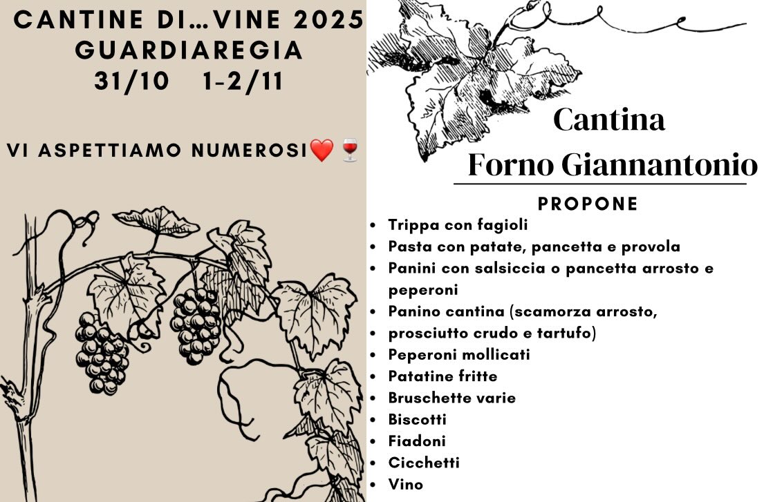 Unisciti a noi per le Cantine di…Vine, un’affascinante celebrazione del vino e della gastronomia locale, presso la Cantina Forno Giannantonio. Scopri deliziosi piatti tradizionali e una selezione di vini pregiati.