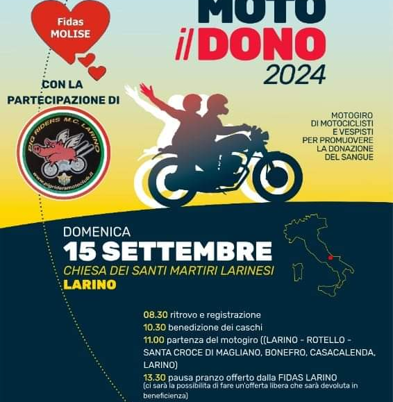 L’evento comprende un raduno di motociclisti, il saluto del Sindaco di San Giuliano del Sannio, una motobenedizione, la consegna di ricordi ai gruppi, un brindisi collettivo, seguito da un motogiro e un apericena by Nat’Tur al Laghetto di Vinchiaturo.