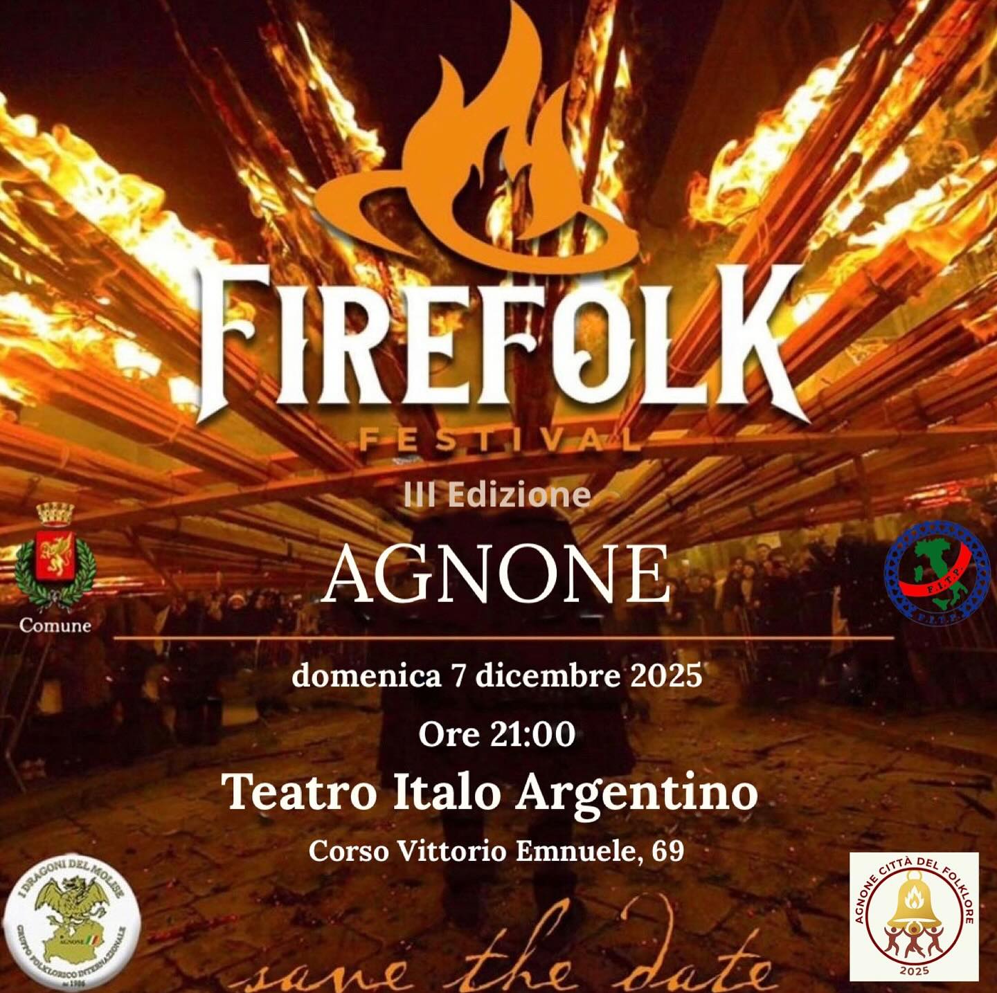 Dopo la Proclamazione di Agnone città del Folklore 2025, siamo lieti di annunciare la terza edizione del FireFolk. Un’edizione speciale e ricca di sorprese. Bloccate le agende e rimanete sintonizzati per tutti gli aggiornamenti.