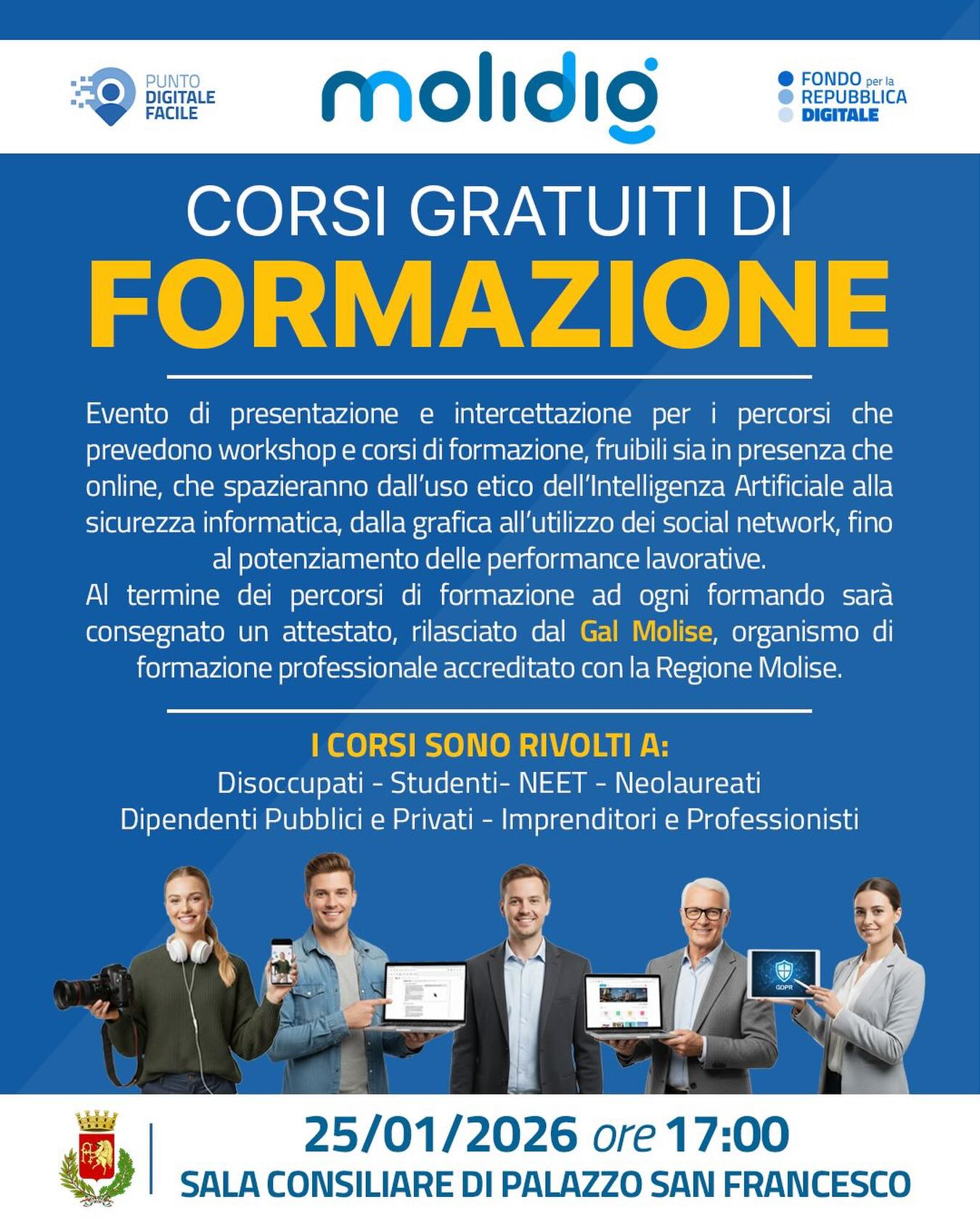 La presentazione del progetto “MOLIDIG – Molise Digitale” si terrà ad Agnone il 25 gennaio 2026, alle ore 17:00 nella sala consiliare di palazzo San Francesco.