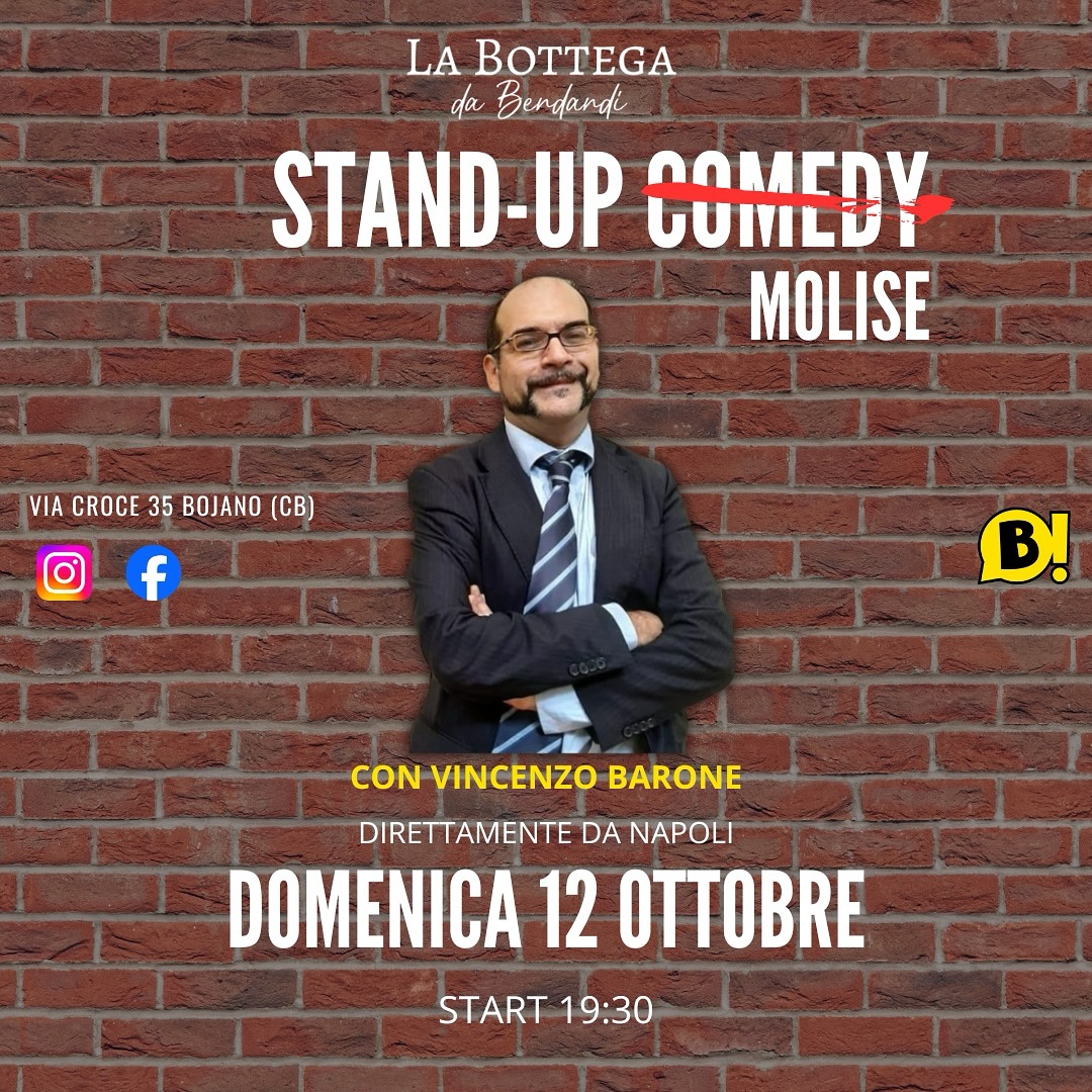 Unisciti a noi per una serata di risate con Vincenzo Barone, un comico di talento proveniente da Napoli. L’evento si svolgerà presso La Bottega da Bergandi a Bojano.
