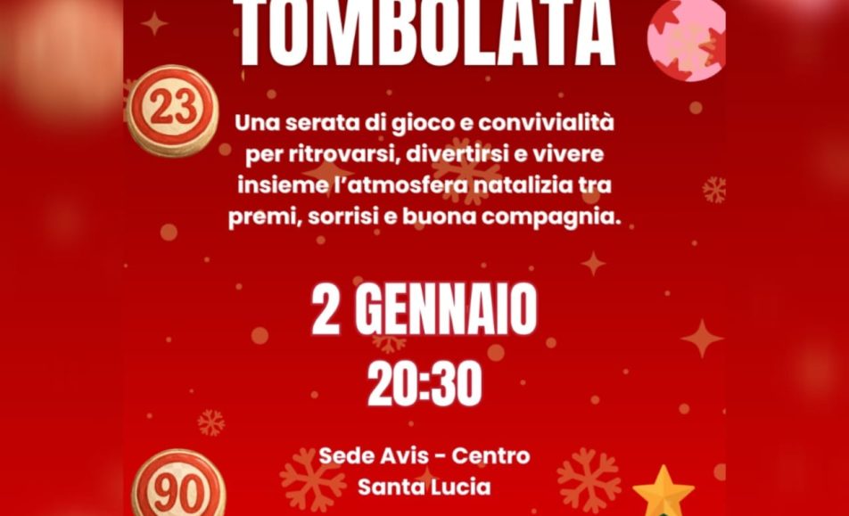 Torna l’appuntamento con la tombolata! Una serata per stare insieme, giocare e divertirsi con premi per grandi e piccoli. Non perderti un evento pieno di gioia e convivialità!