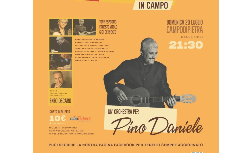Un nuovo appuntamento dedicato all’amore per la musica di Pino Daniele. Dopo dieci anni dalla sua scomparsa, il Circolo Tennis Campobasso ospita una serata di musica live per rendere omaggio a uno dei più grandi artisti della nostra storia musicale.