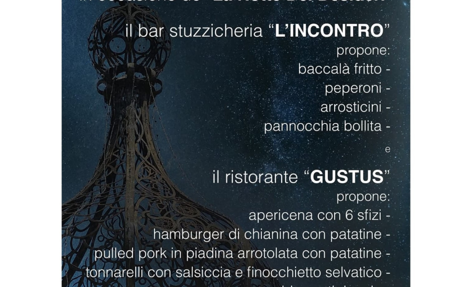 In occasione della serata, verrà offerta una Apericena accompagnata da deliziosi vini in degustazione 🍷.