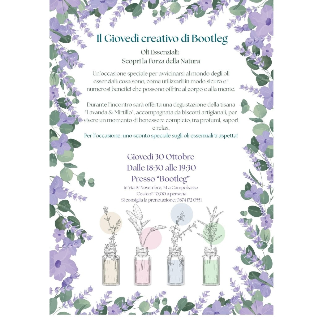 Durante l’incontro sarà offerta una degustazione della tisana “Lavanda & Mirtillo”, accompagnata da biscotti artigianali, per vivere un momento di benessere completo, tra profumi, sapori e relax.