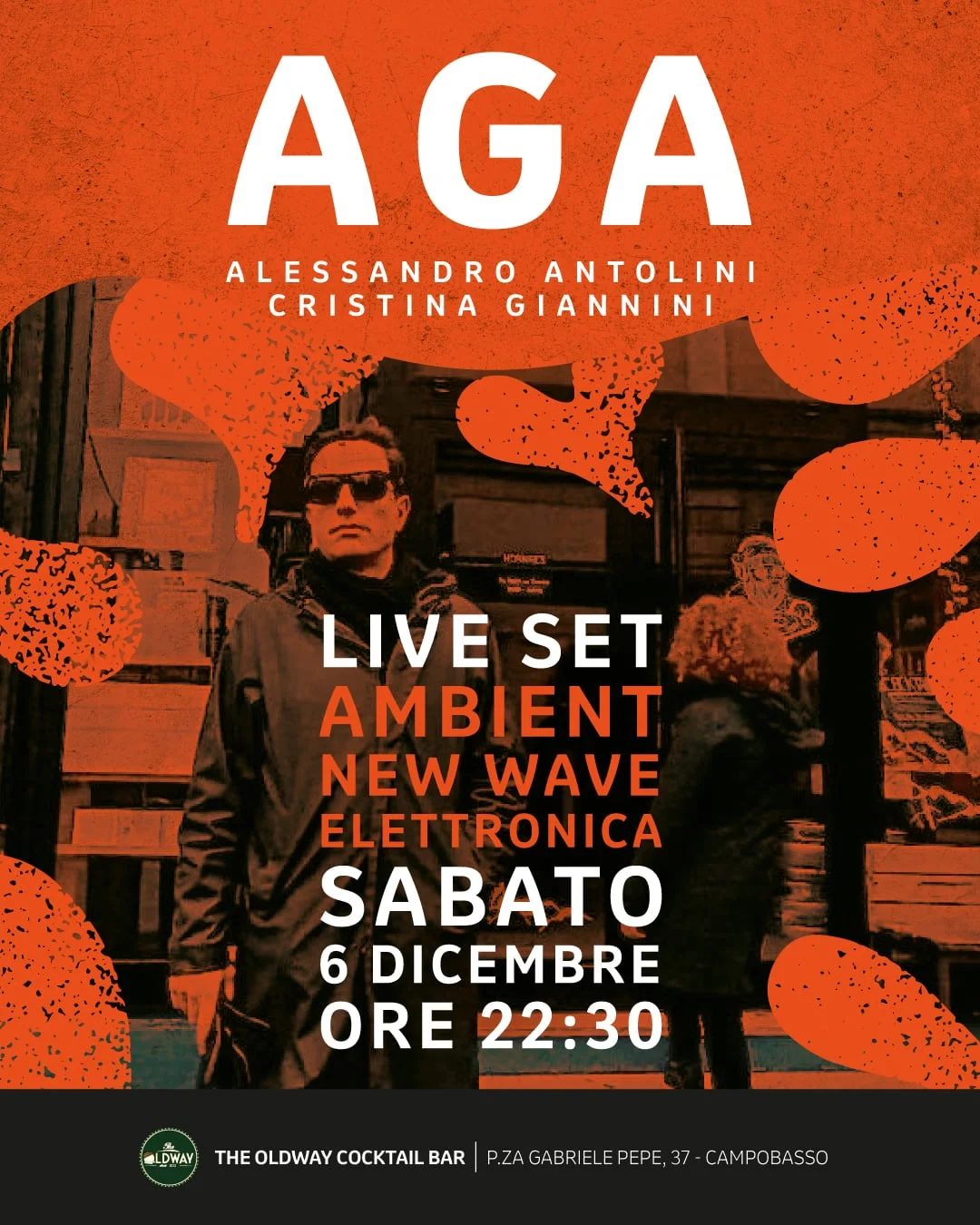 Non perdere il prossimo Live Set di AGA presso il The Oldway Cocktail Bar con due ospiti provenienti da Cesenatico, Alessandro Antolini e Cristina Giannini. Ascolta un’esperienza unica di ambient, new wave e musica elettronica.