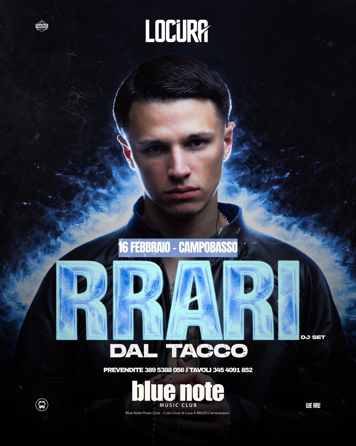 Il 16 febbraio, unisciti a noi per un’esperienza musicale unica al Blue Note Music Club di Campobasso con RRARI, dj set dal Tacco.