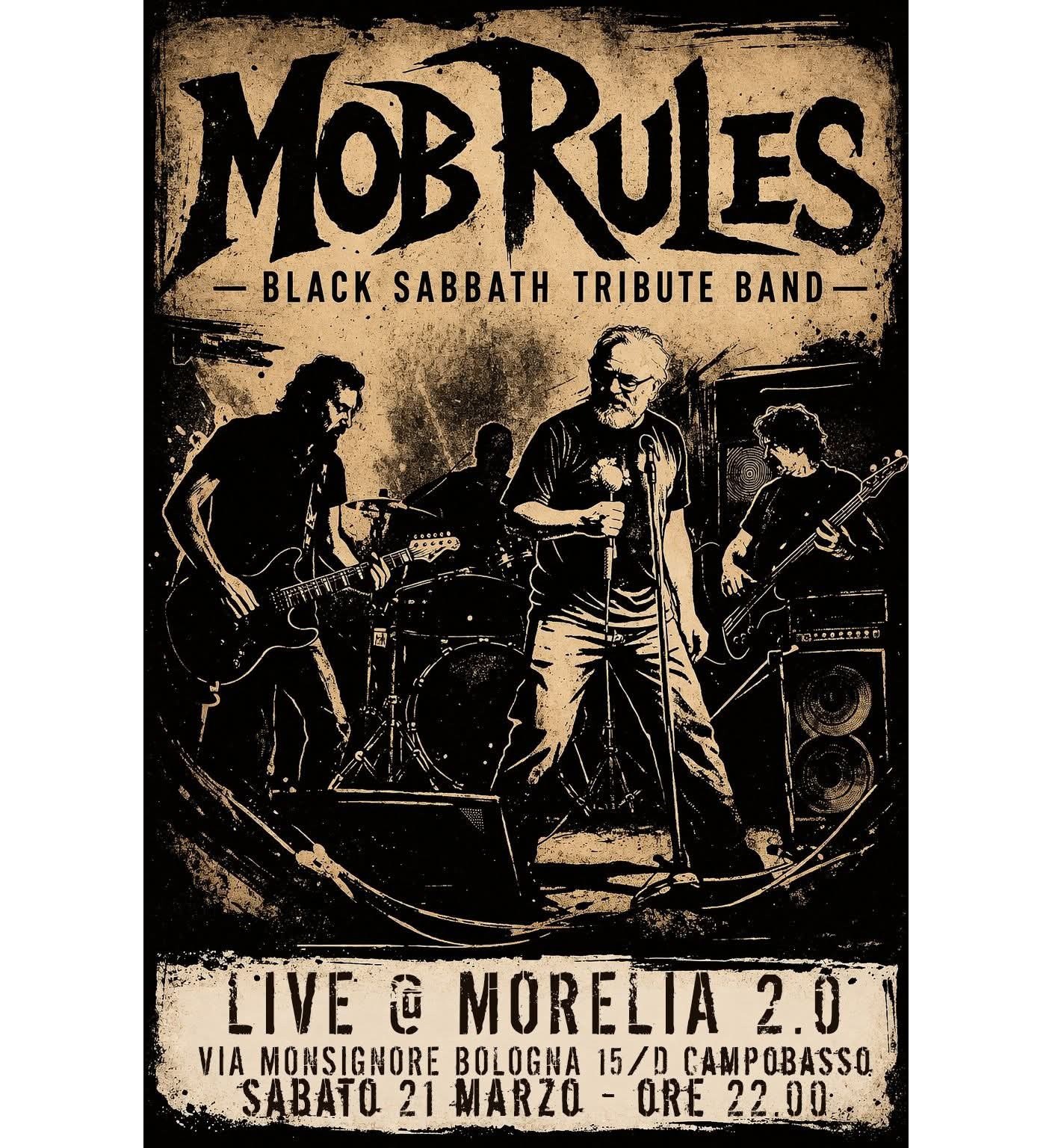 Unisciti a noi per una serata indimenticabile con i Mob Rules, una tribute band dedicata ai leggendari Black Sabbath. Non perdere l’opportunità di rivivere i classici della band in un’atmosfera coinvolgente e piena di energia!
