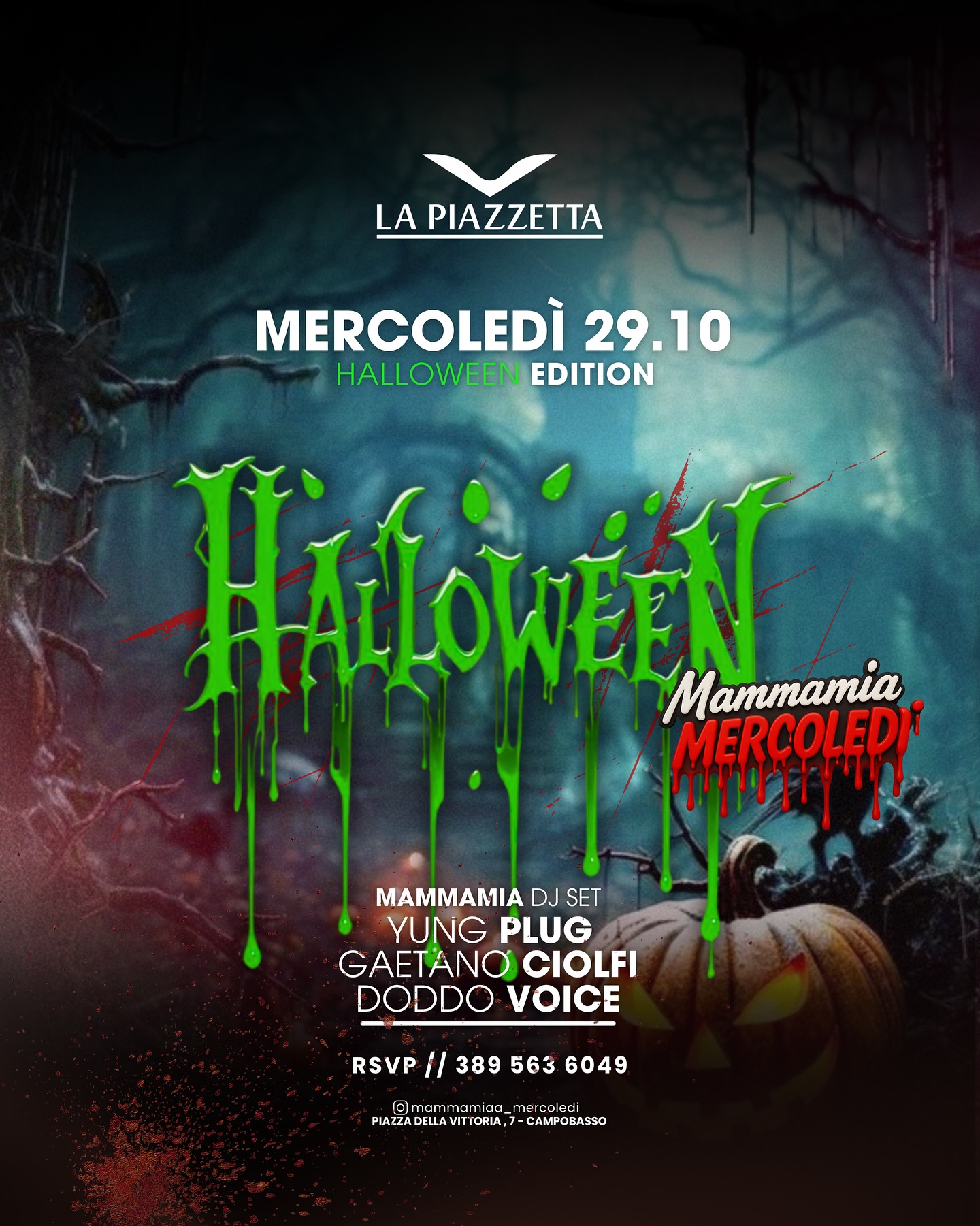 Unisciti a noi per la Halloween Edition del Mamamia Mercoledì! Il mercoledì 29 ottobre, torna il party universitario più atteso alla Piazza della Vittoria, 7 – Campobasso.