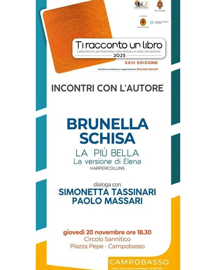 Unisciti a noi per incontrare Brunella Schisa, autrice del libro ‘La Più Bella’. L’evento sarà un’opportunità unica per dialogare con l’autrice e approfondire la sua opera.