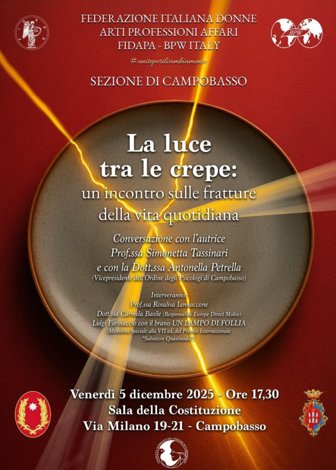 Un incontro sulle fratture della vita quotidiana. Conversazione con l’autrice Prof.ssa Simonetta Tassinari e con la Dott.ssa Antonella Petrella (Vicepresidente dell’Ordine degli Psicologi di Campobasso).