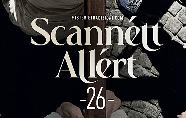 Il titolo di quest’anno, “Scannètt Allèrt”, evocativo del passato, rappresenta il grido del capo squadra per iniziare il sollevamento del Mistero, un segnale comune, carico di emozione e allegria.