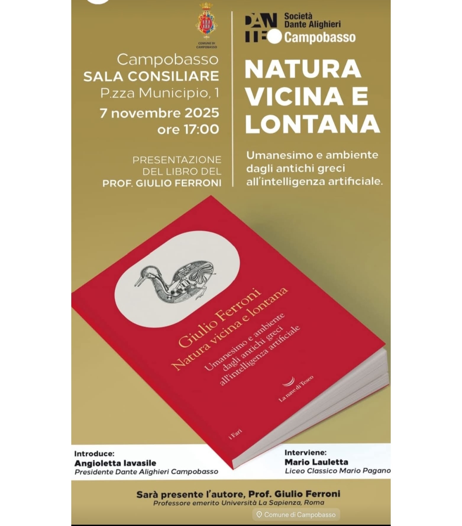 Sarà presente l’autore, Prof. Giulio Ferroni, professore emerito Università La Sapienza, Roma.
