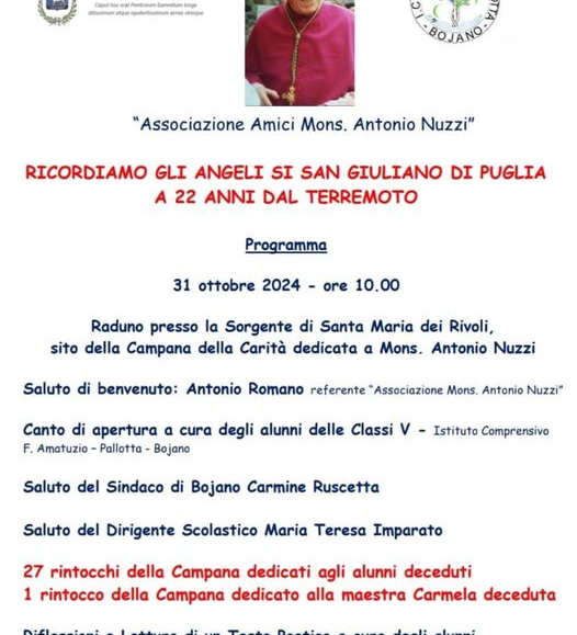 L’ANPI Molise, in collaborazione con il Comune di Campobasso e la CGIL Molise, organizza una passeggiata storica con soste nei luoghi dedicati alla memoria. Si visiteranno via Mons. Secondo Bologna, piazza della Vittoria, corso V. Emanuele II, via Sant’Antonio abate, via Mario Brusa Romagnoli, largo Massimo Tosti e via Martiri Molisani della Resistenza. Durante le soste ci saranno letture e testimonianze. Conclusione con aperitivo resistenziale.