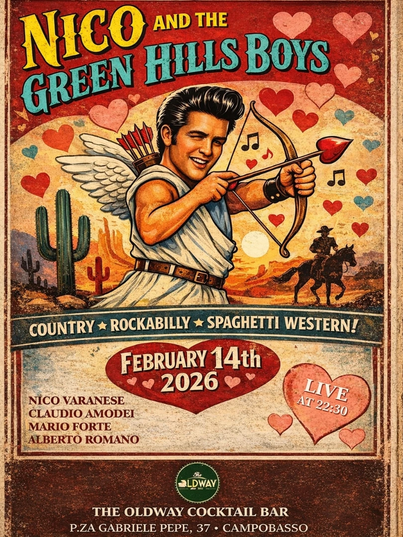 Un evento imperdibile per festeggiare San Valentino! Porta chi ami e lasciati coinvolgere dalla musica country, rockabilly e spaghetti western dei Nico and the Green Hills Boys.