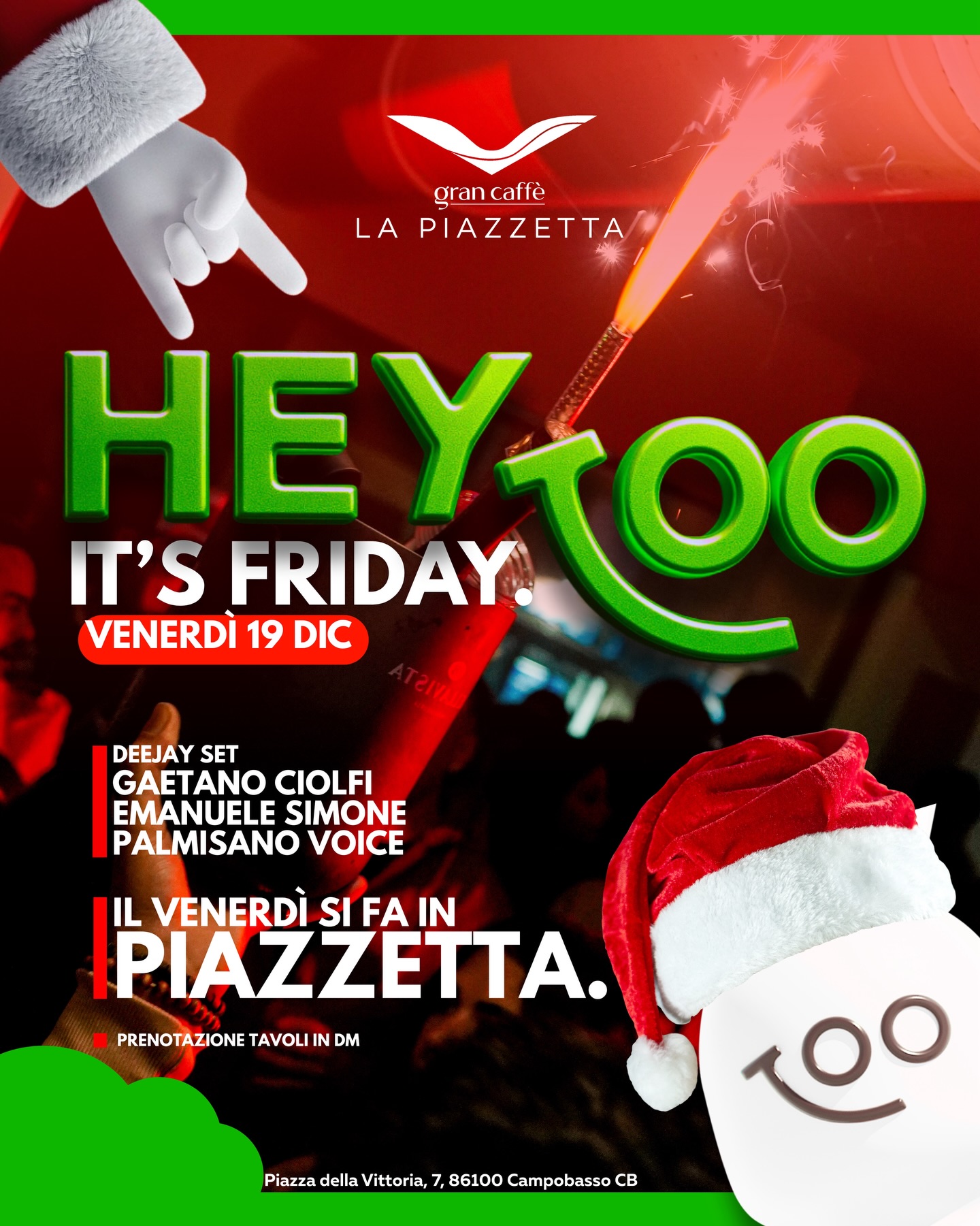 Non perdere il nostro evento Hey Too! questo Venerdì 19 Dicembre.