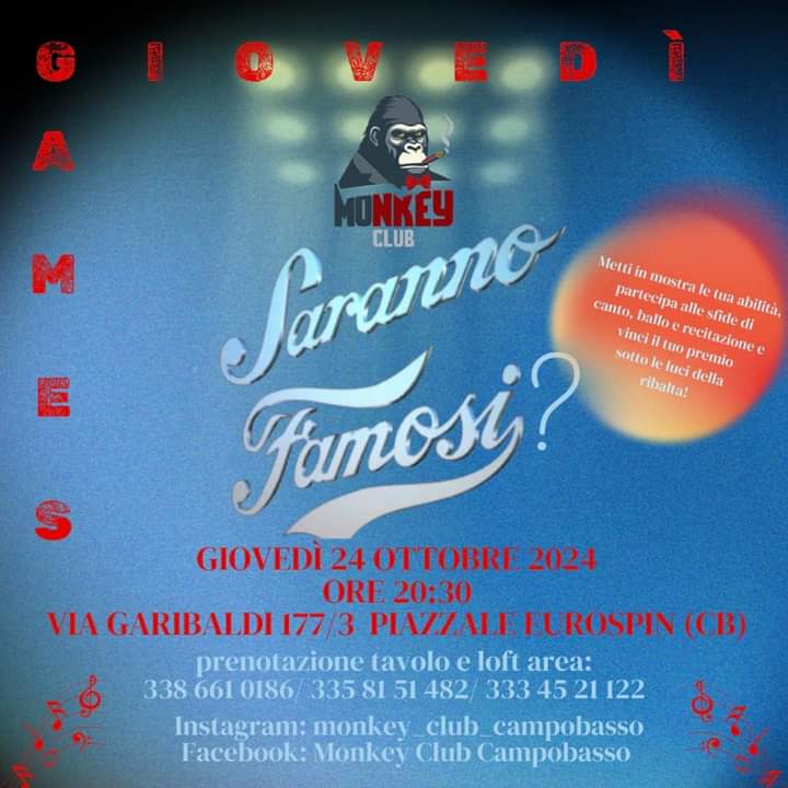 Seguici su Instagram: @monkey_club_campobasso e su Facebook: Monkey Club Campobasso.