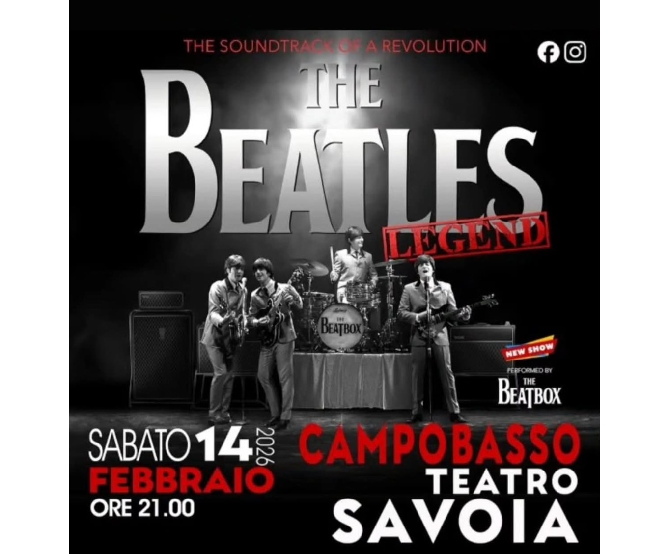Un emozionante concerto dedicato ai Beatles si terrà il 14 Febbraio 2026 presso il Teatro Savoia a Campobasso. Preparati a rivivere i grandi successi di una delle band più iconiche della storia della musica!