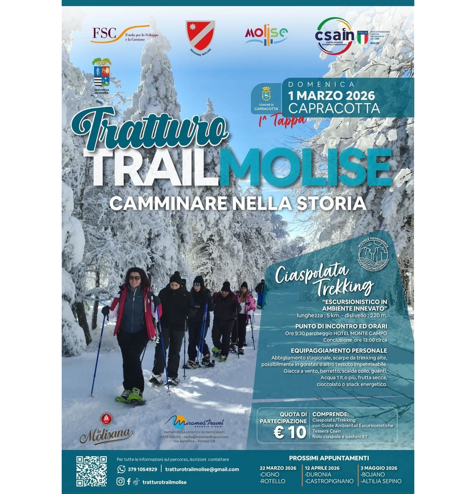 Prossimi appuntamenti: 22 marzo 2026 a Cigno e Rotello, 12 aprile 2026 a Durronia e Castelproprio, 3 maggio 2026 a Bojano e Ittilia Sepino.