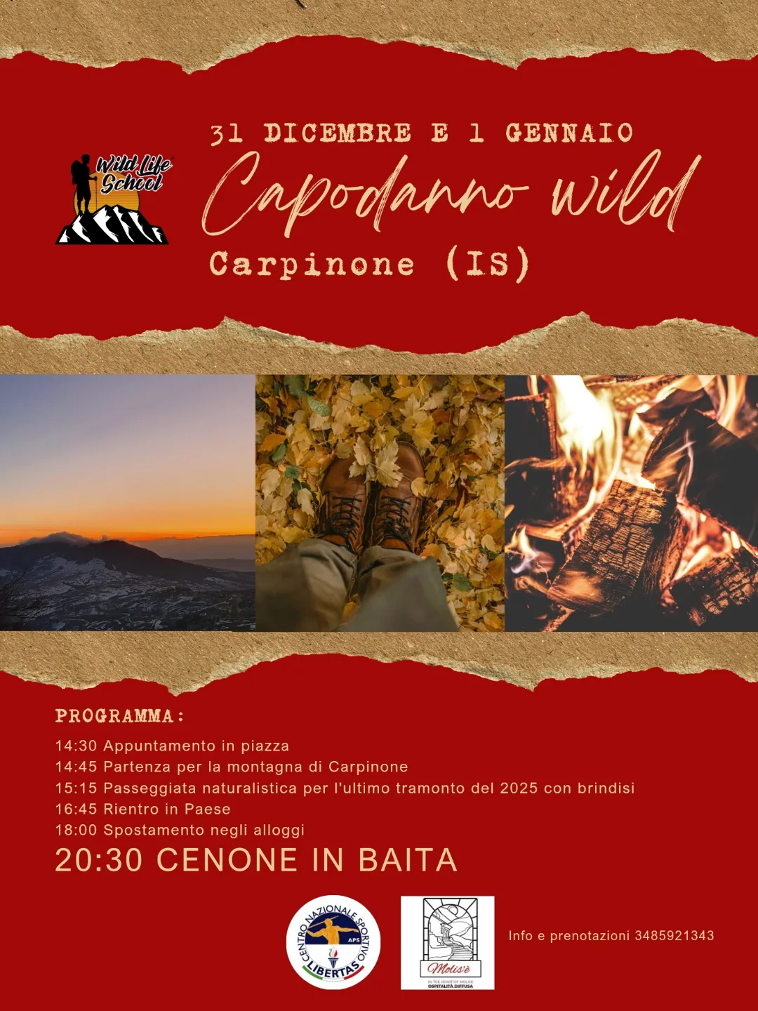 Se cerchi un capodanno alternativo, questo è l’evento per te! Parteciperai a una bella passeggiata naturalistica per salutare l’ultimo tramonto del 2025, con un prosecco in vetta. Dopo, ti aspetta una cena in un ambiente rustico e accogliente immersi nel verde molisano.