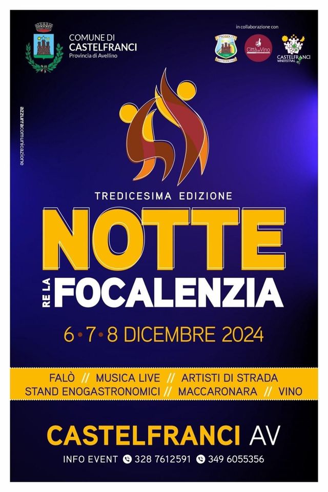 Unisciti a noi per la tredicesima edizione della Notte della Focalenzia a Castelfranci! Questo evento eccezionale si svolgerà dal 6 al 8 dicembre 2024. Preparati per tre giorni di divertimento con: