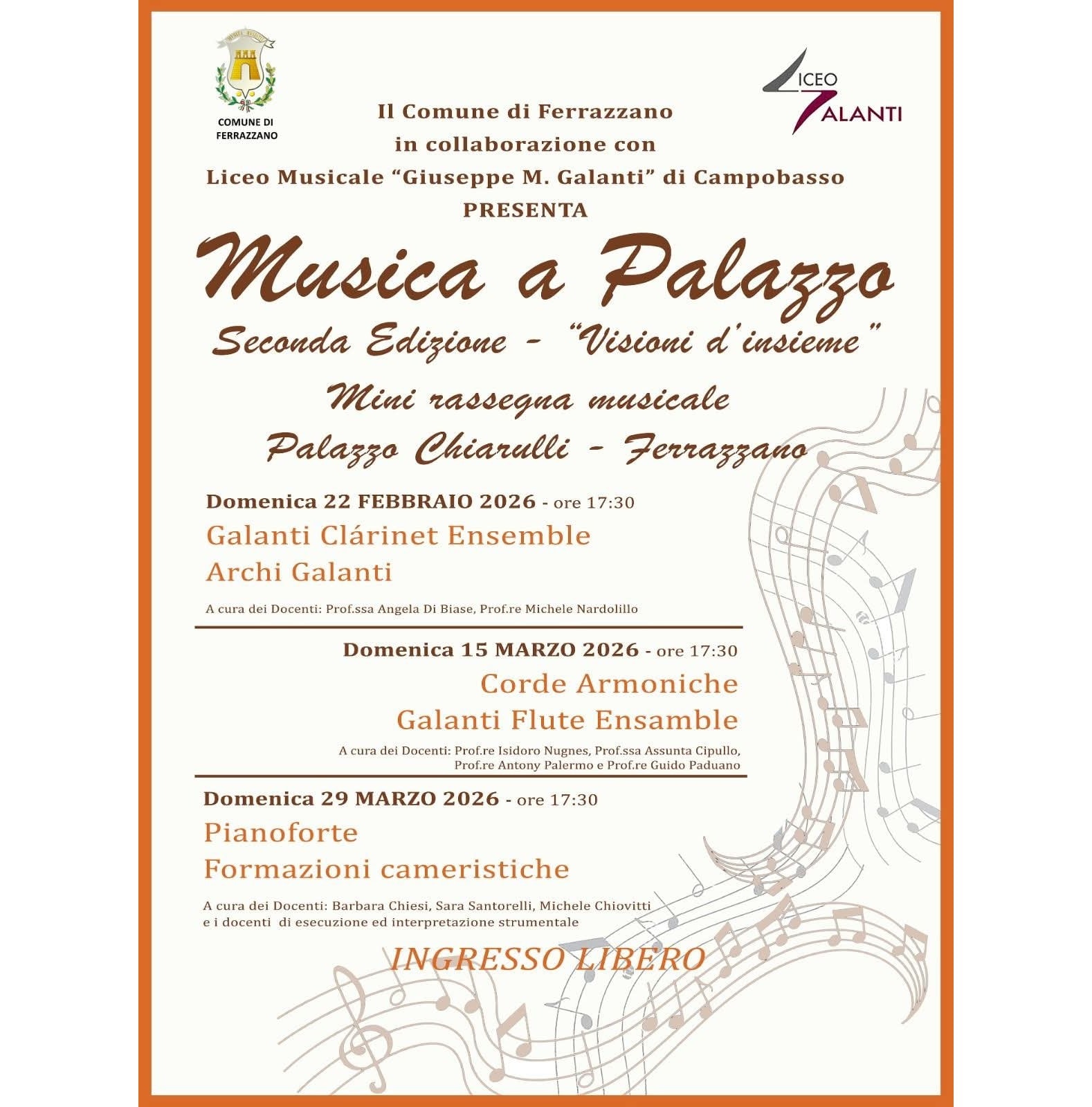 Il Comune di Ferrazzano in collaborazione con il Liceo Musicale “Giuseppe M. Galanti” di Campobasso presenta la seconda edizione di Musica a Palazzo dal titolo Visioni d’insieme.