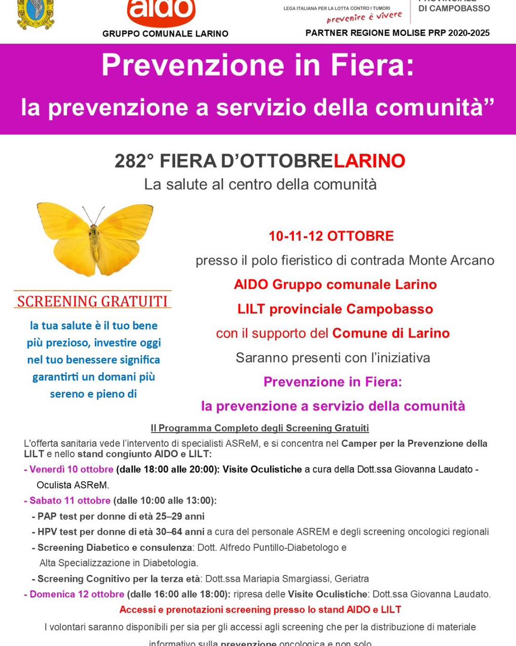 La 282ª Fiera d’Ottobre si svolgerà a Larino dal 10 al 12 ottobre 2025, offrendo screening gratuiti per la salute. L’evento, organizzato da AIDO, LILT e il comune di Larino, è un’importante opportunità per i cittadini di prendersi cura della propria salute.