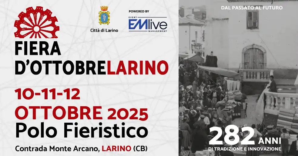 La Fiera d’Ottobre, giunta alla sua 282ª edizione, si svolgerà dal 10 al 12 ottobre 2025 presso il Polo Fieristico di Larino. Un evento che unisce storia e futuro, offrendo ai visitatori l’opportunità di esplorare un mercato ricco di tradizioni.
