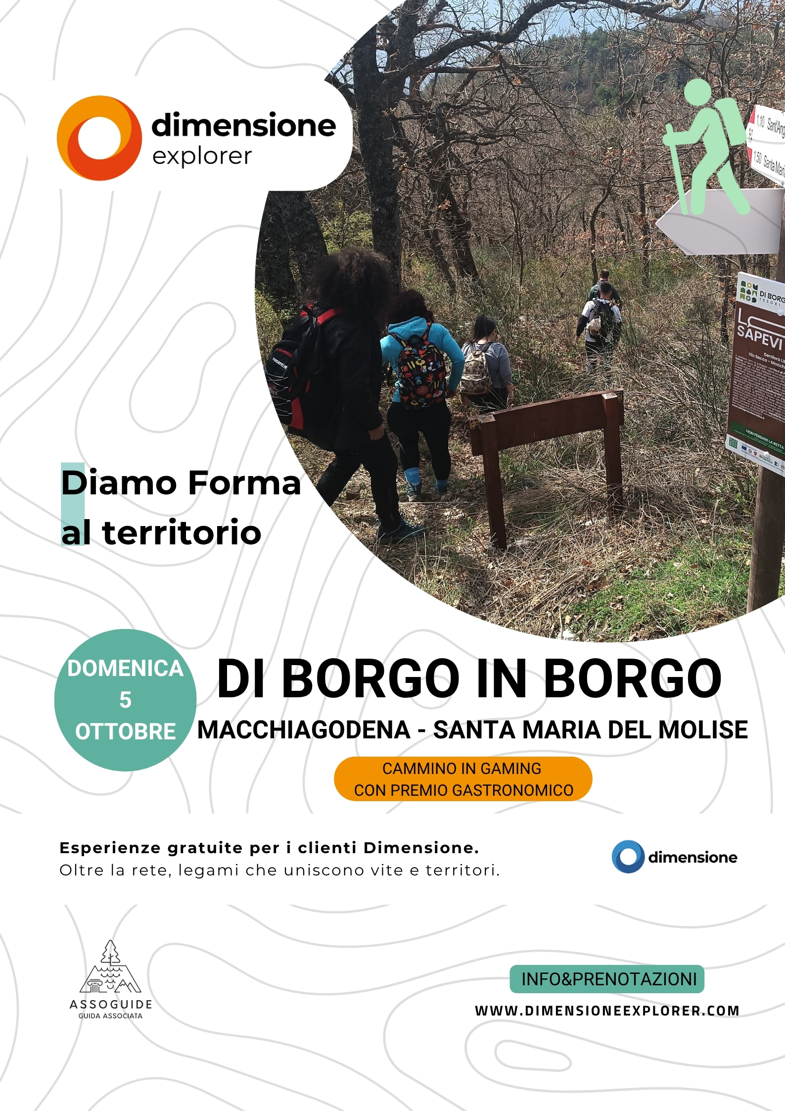Unisciti a noi per Di Borgo in Borgo il 5 ottobre 2025. Questo evento prevede un cammino in gaming con un premio gastronomico. Le esperienze sono gratuite per i clienti Dimensione. Scopri la bellezza della natura mentre esplori i legami tra vite e territori!