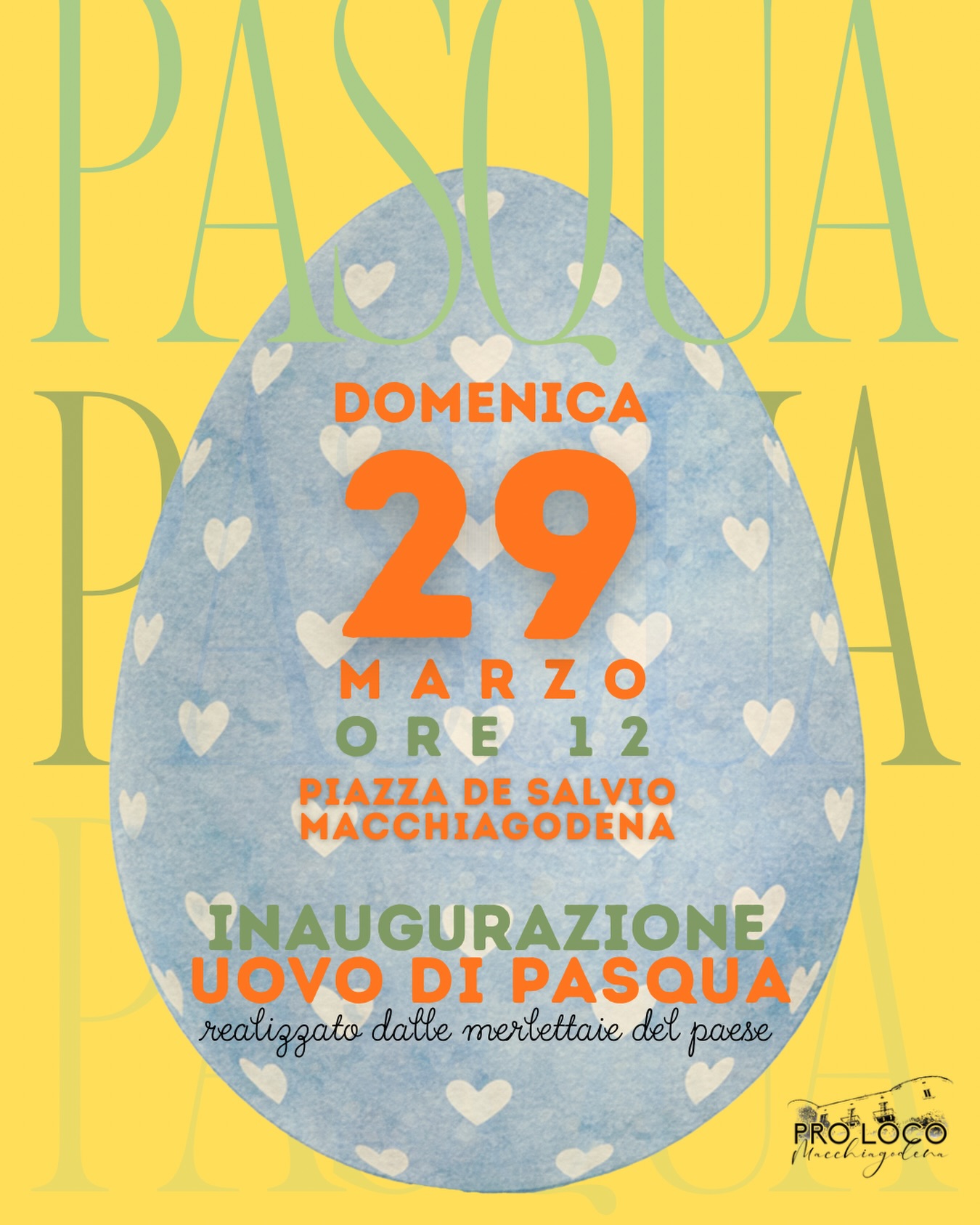 La Pro Loco di Macchiagodena è lieta di invitarvi all’inaugurazione dello splendido uovo di Pasqua realizzato all’uncinetto. Questo evento rappresenta la passione, creatività e tradizione condivisa delle merlettaie del paese. Sarà un momento speciale da vivere insieme, tra colori, sorrisi e spirito di comunità. Non mancate!