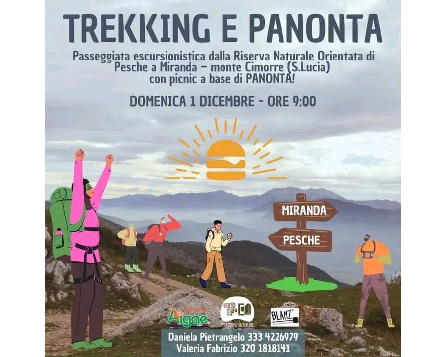 Domenica 1 Dicembre alle ore 9:00, ci dirigeremo verso il monte Cimore (S. Lucia) per una giornata all’insegna della natura e del buon cibo. Alla fine dell’escursione, ci fermeremo per un picnic a base di Panonta!