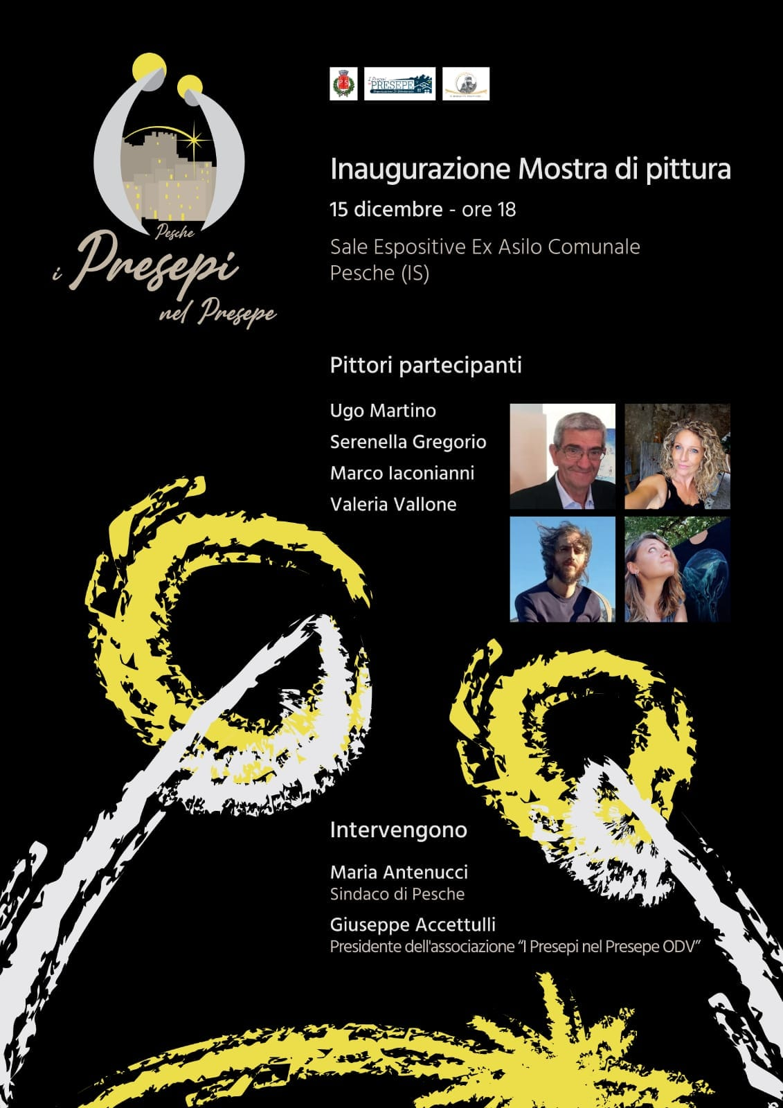 La comunità di Pesche accoglie l’inaugurazione di una mostra d’arte il 15 dicembre alle ore 18:00 presso le Sale Espositive dell’Ex Asilo Comunale. L’evento esibirà le creazioni di noti pittori quali Ugo Martino, Serenella Gregorio, Marco Iaconianni e Valeria Vallone. L’inaugurazione vedrà interventi importanti come quello del Sindaco Maria Antenucci e del Presidente dell’associazione ‘I Presepi nel Presepe ODV’, Giuseppe Accettulli, offrendo una serata di apprezzamento artistico e di celebrazione culturale locale.