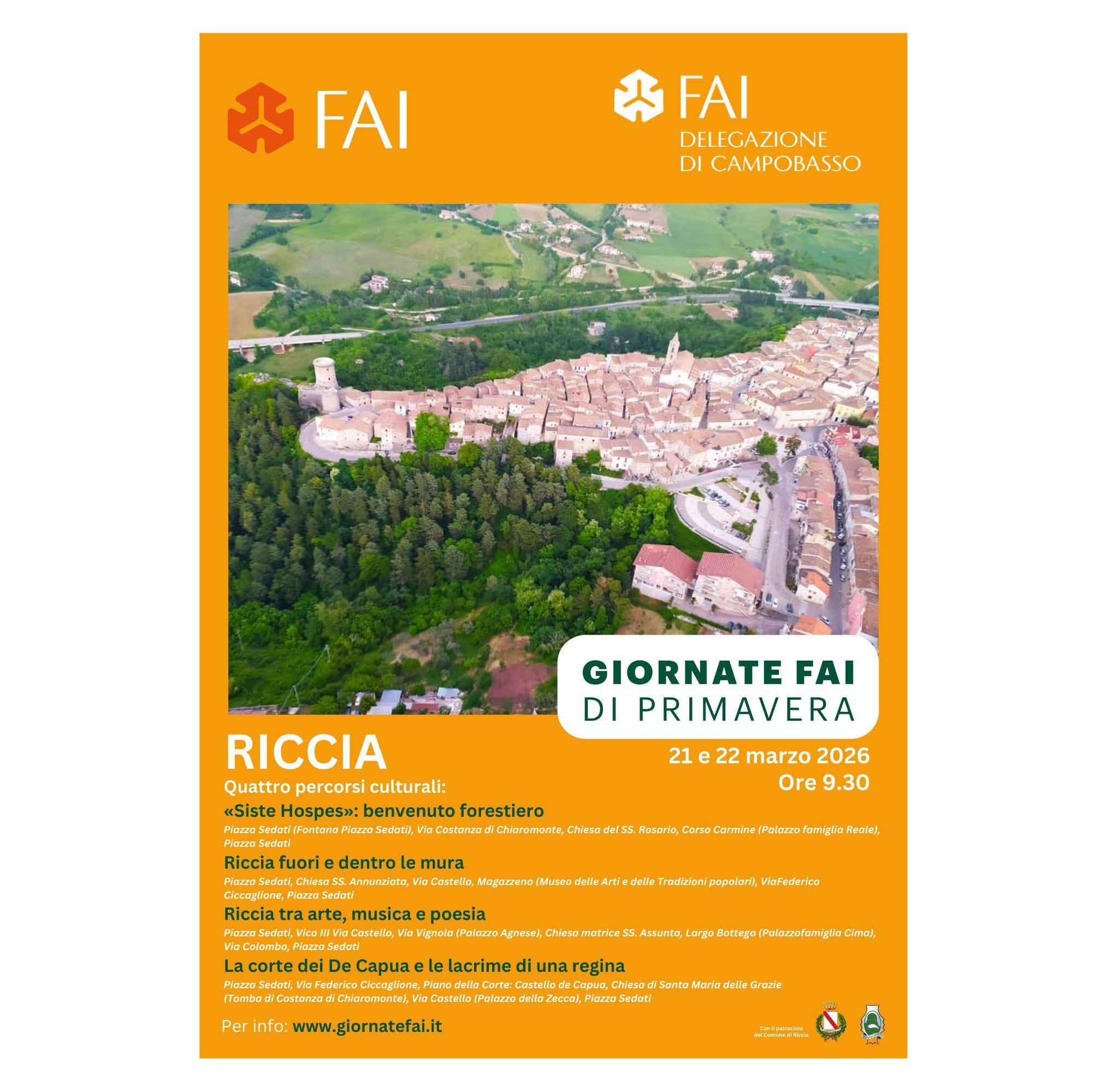 Unisciti a noi per le Giornate FAI di Primavera a Riccia, dove potrai esplorare quattro percorsi culturali unici: