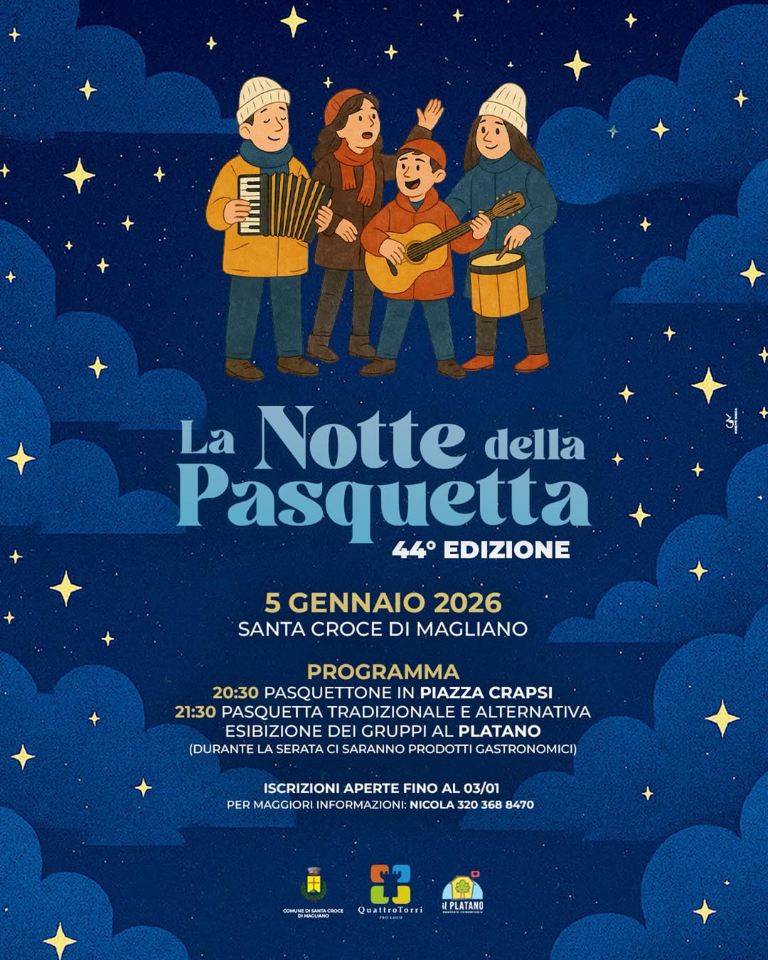 Un evento da non perdere a Santa Croce di Magliano il 5 gennaio 2026. Scopri il programma ricco di musica e degustazioni appariscenti!