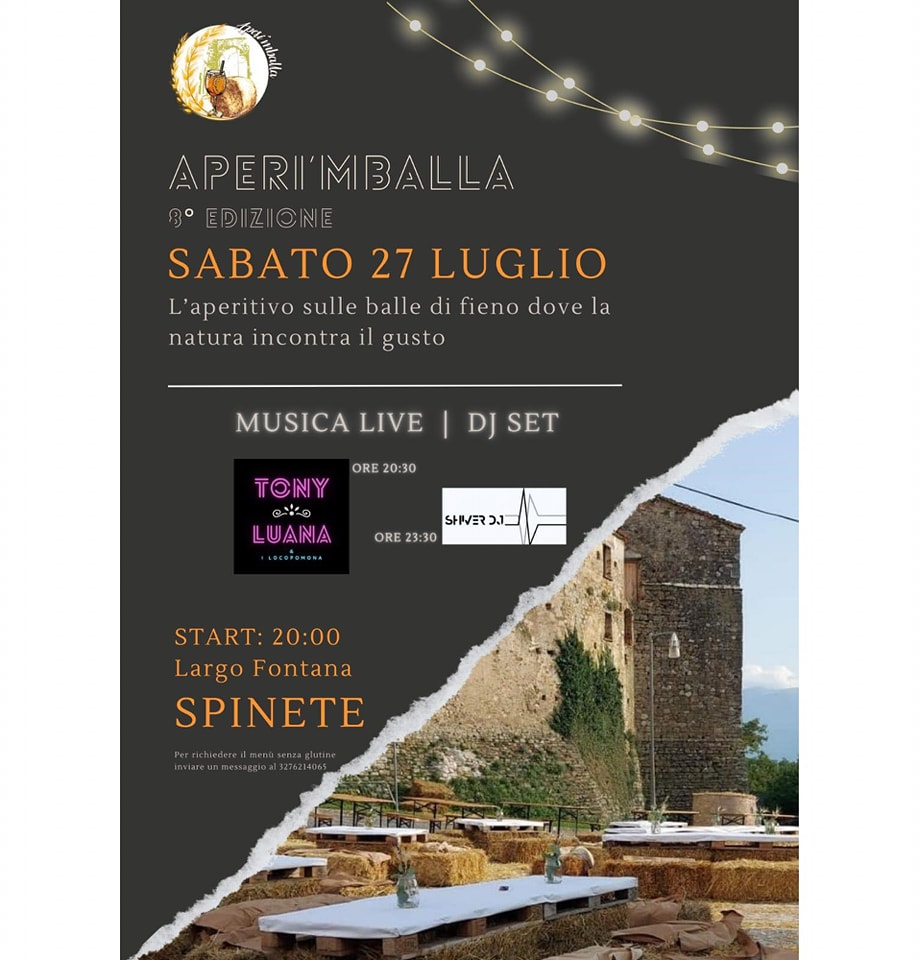 Unisciti a noi per l’APER’IMBALLA, un evento unico che combina aperitivi e musica in un ambiente naturale. Con la partecipazione di Tony & Luana e DJ Silver, l’atmosfera sarà indimenticabile. Non perdere questa opportunità di gustare deliziosi cibi e ascoltare ottima musica!