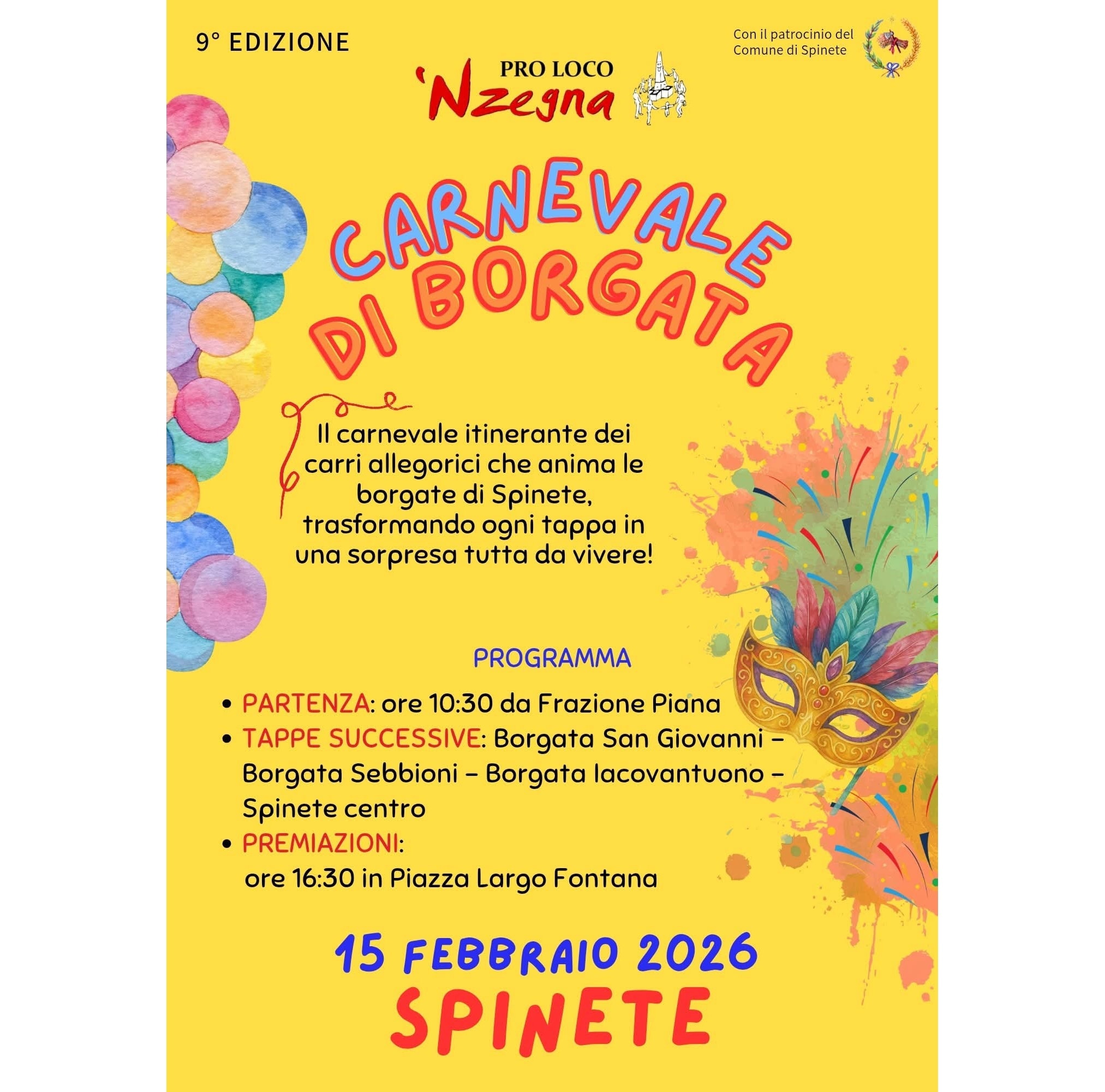 Il carnevale itinerante dei carri allegorici che anima le borgate di Spinetet, trasformando ogni tappa in una sorpresa tutta da vivere!