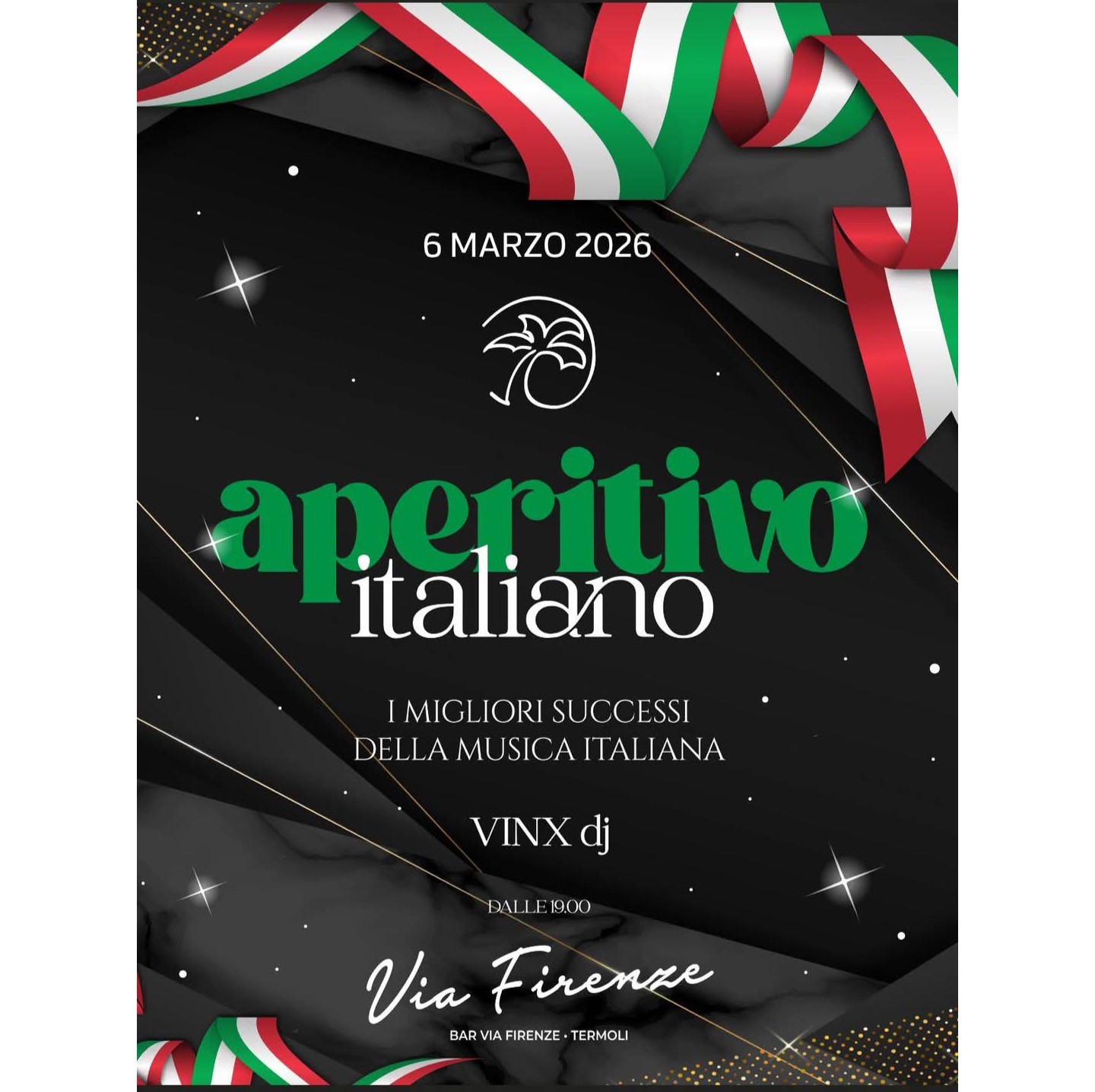 Unisciti a noi per un’esperienza unica di ‘Aperitivo Italiano’ dove potrai gustare i migliori successi della musica italiana. Il DJ Vinx sarà il protagonista della serata, suonando i brani più amati dell’Italia. L’evento inizia dalle 19:00 presso il Bar Via Firenze a Termoli.