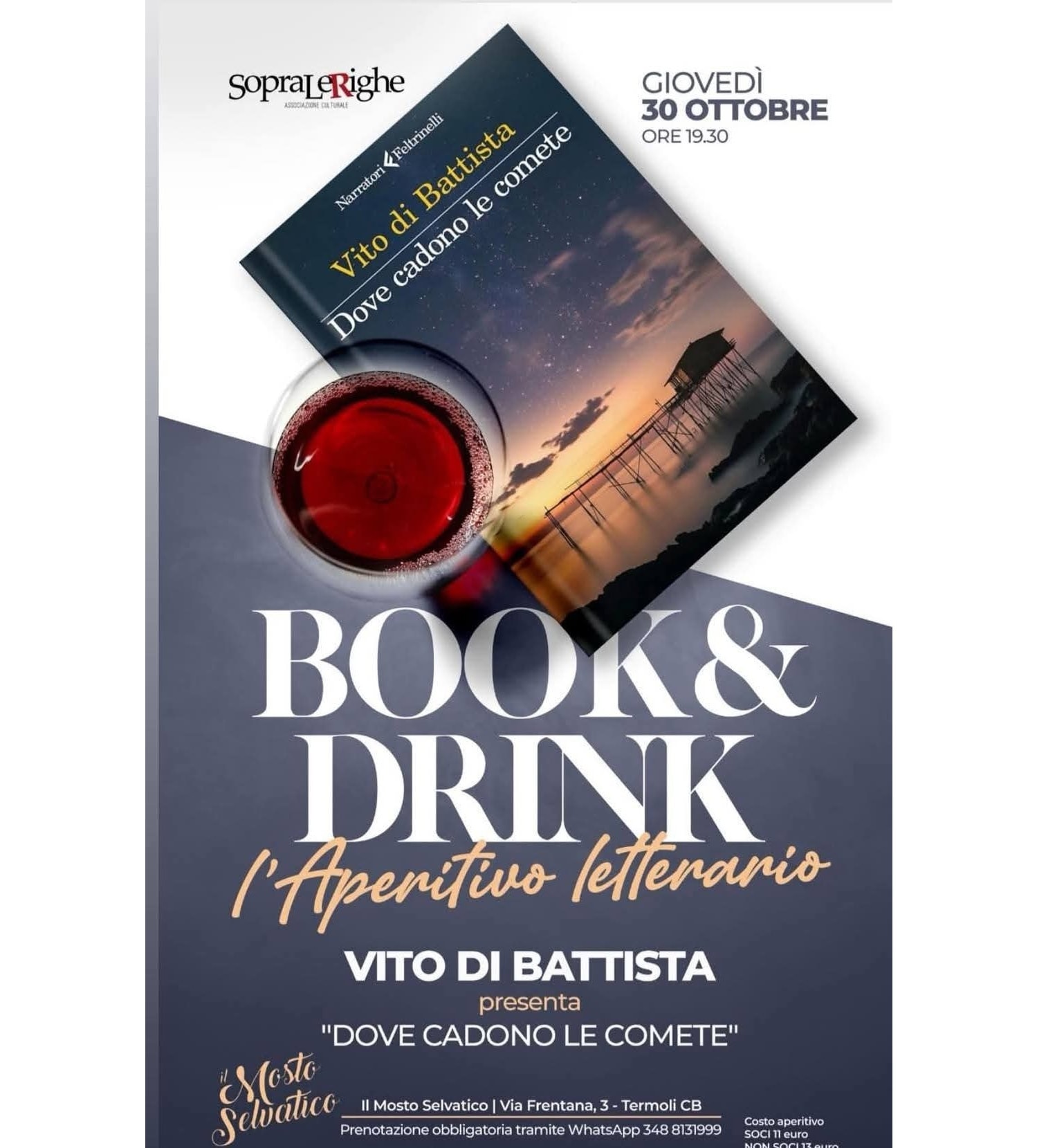 Unisciti a noi per un aperitivo letterario unico nel suo genere! Vito Di Battista presenterà il suo libro ‘Dove cadono le comete’. L’evento si terrà presso Il Mosto Selvatico a Termoli, dove potrai gustare un delizioso aperitivo e immergerti nella letteratura.