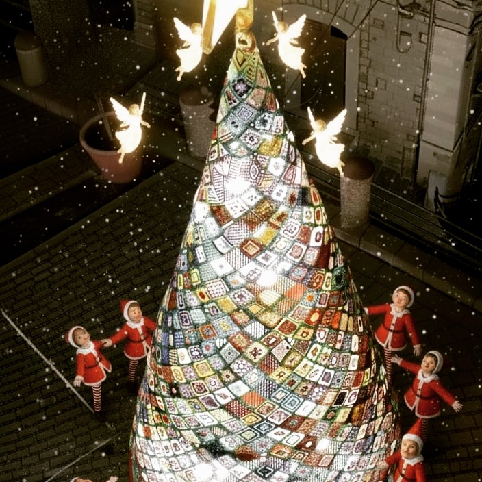 Accensione delle luminarie. Verrà illuminato anche l’albero ad uncinetto, con centinaia di tessere colorate.