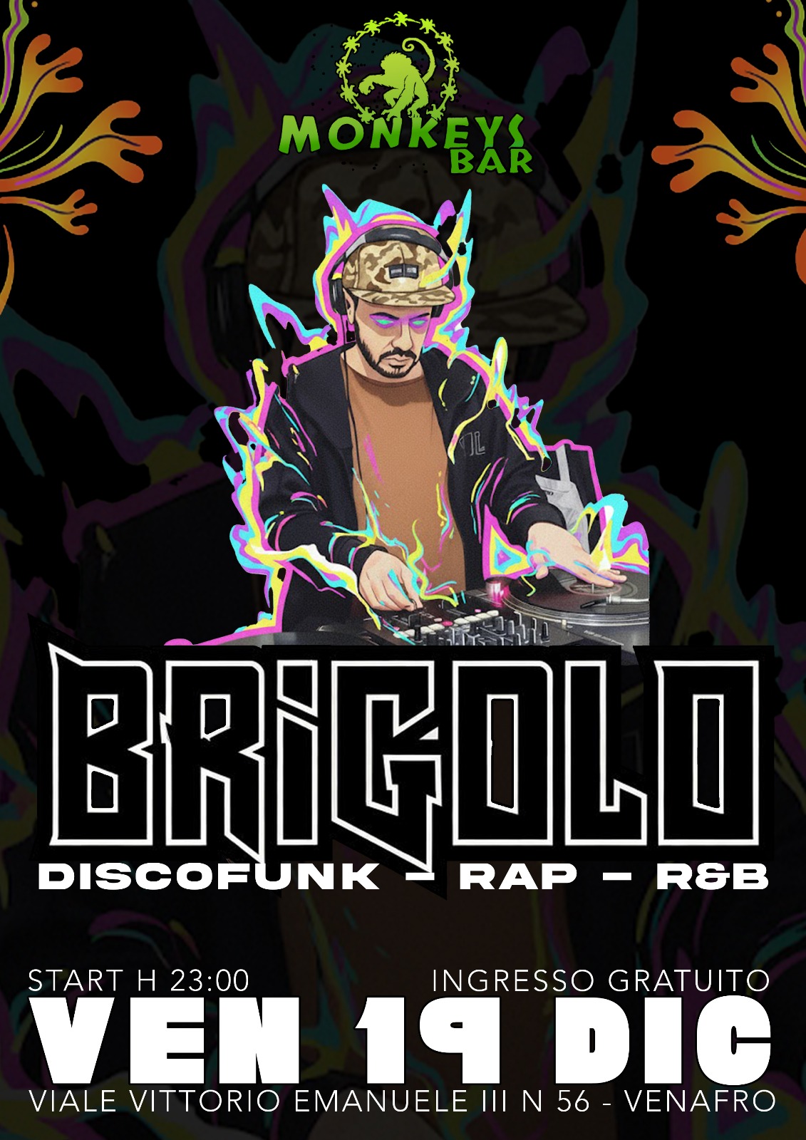 Unisciti a noi al Monkeys Bar per una serata di musica dal vivo con Brigolo, che presenta i migliori ritmi di discfunk, rap e R&B. Ingresso gratuito!