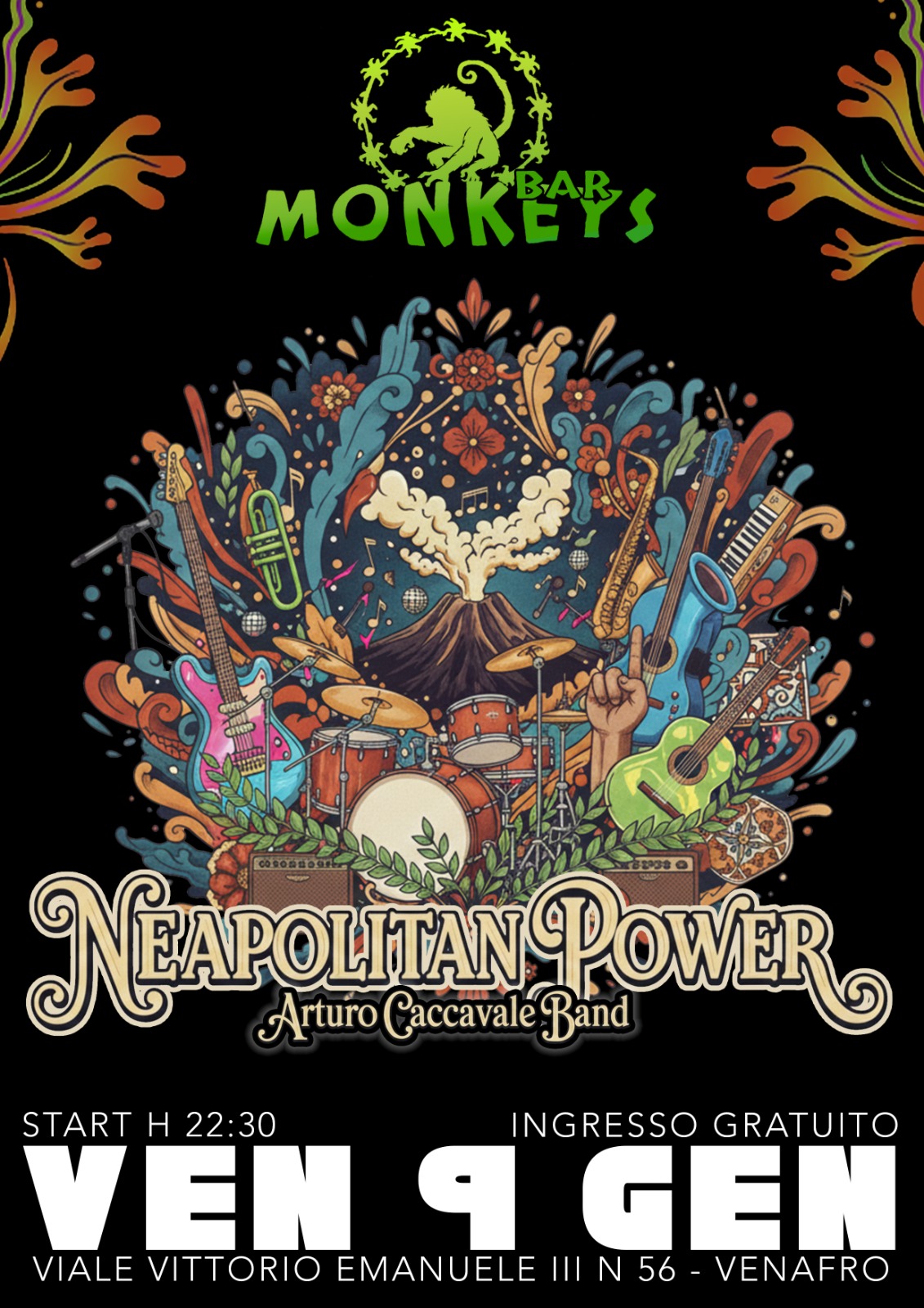 Unisciti a noi per una serata di musica indimenticabile con i Neapolitan Power, guidati da Arturo Caccavale. Il concerto si terrà il 9 gennaio 2026 presso il Bar Monkeys di Venafro.