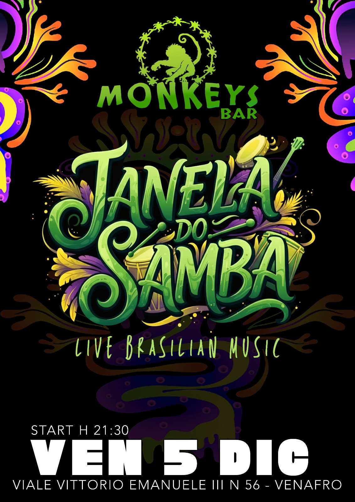 Sei invitato a una serata indimenticabile al Monkey’s Bar di Venafro con la musica live brasiliana di JANELA DO SAMBA!