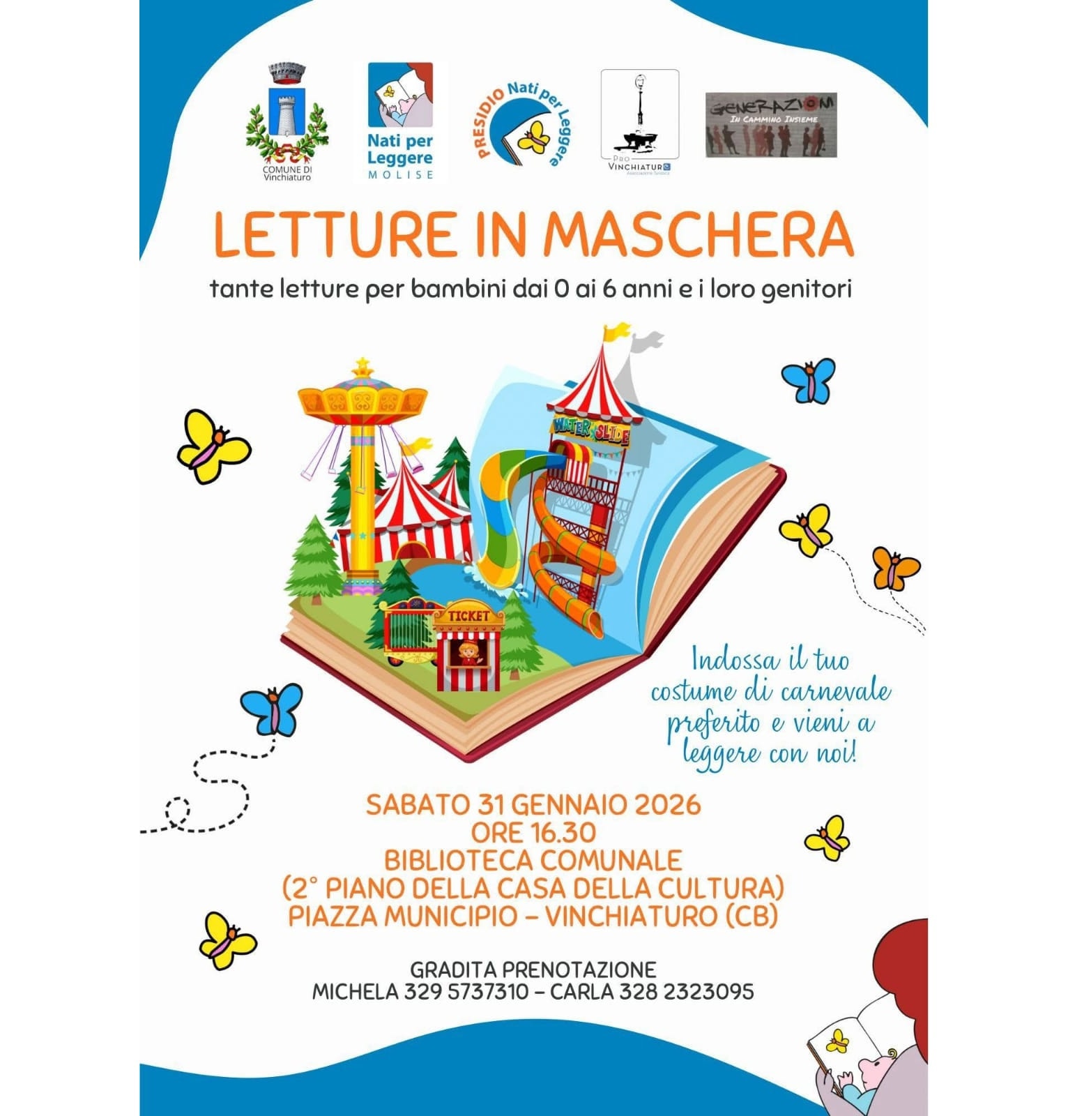 Un pomeriggio di letture per bambini dai 0 ai 6 anni e i loro genitori. Indossa il tuo costume di carnevale preferito e vieni a leggere con noi!